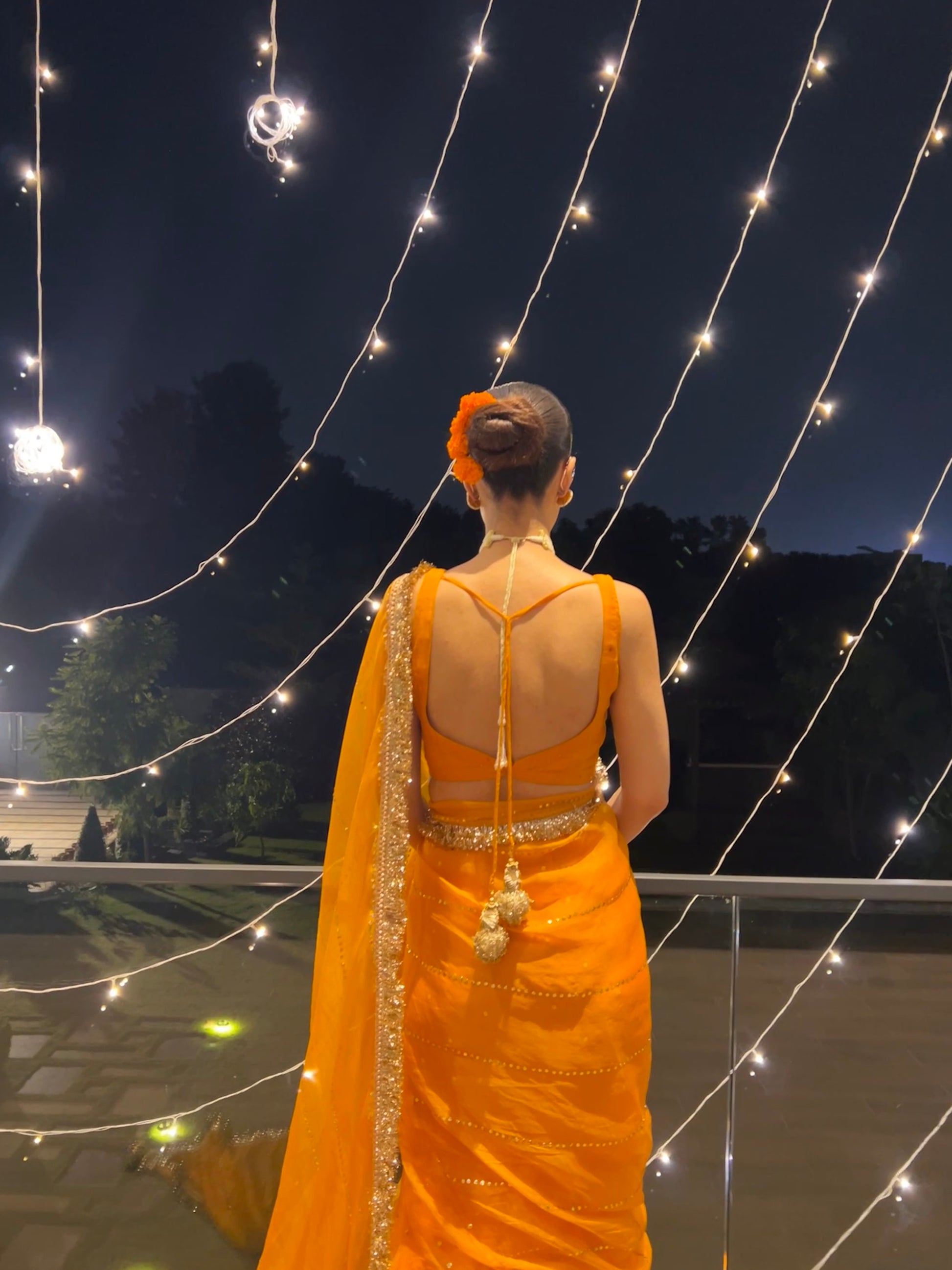 A celebration of warmth and radiance, the Laila - e - Husn saree is crafted in a rich marigold hue that captures the spirit of festivity and elegance. It drapes effortlessly, reflecting light with every movement. Perfect for morning and evening soirées and festive gatherings, this timeless piece embodies grace, tradition, and modern allure all in one.