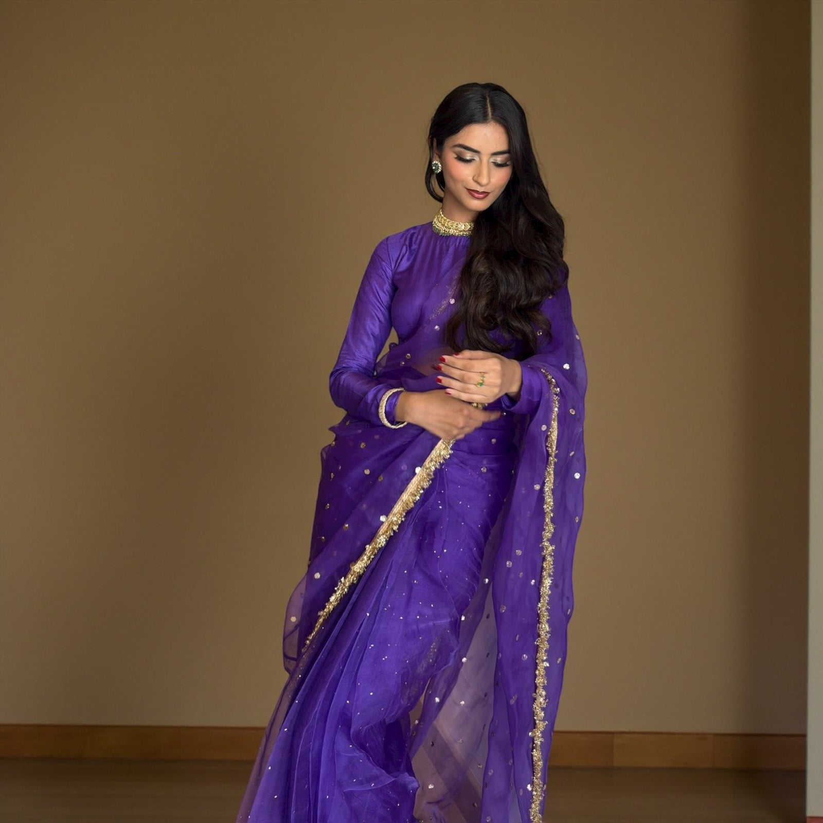 Style it with - Gold jewellery, soft curls, and a hint of kohl for that ethereal glow.